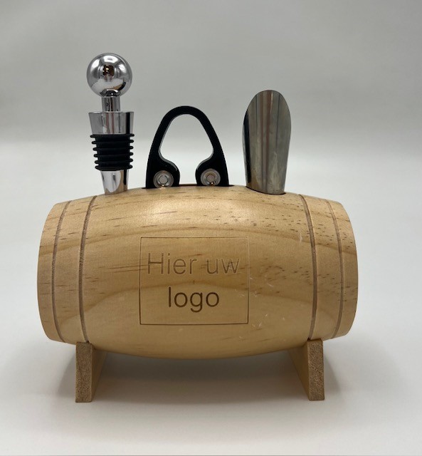 Op zoek naar een cadeau of relatiegeschenk voor iemand die van wijn houd? Dan is ons houten wijn set een perfect optie. Voeg een naam, test of logo toe en maak het een extra speciaal cadeau.